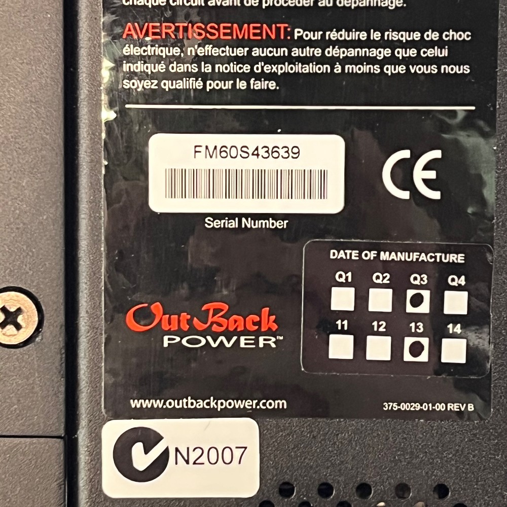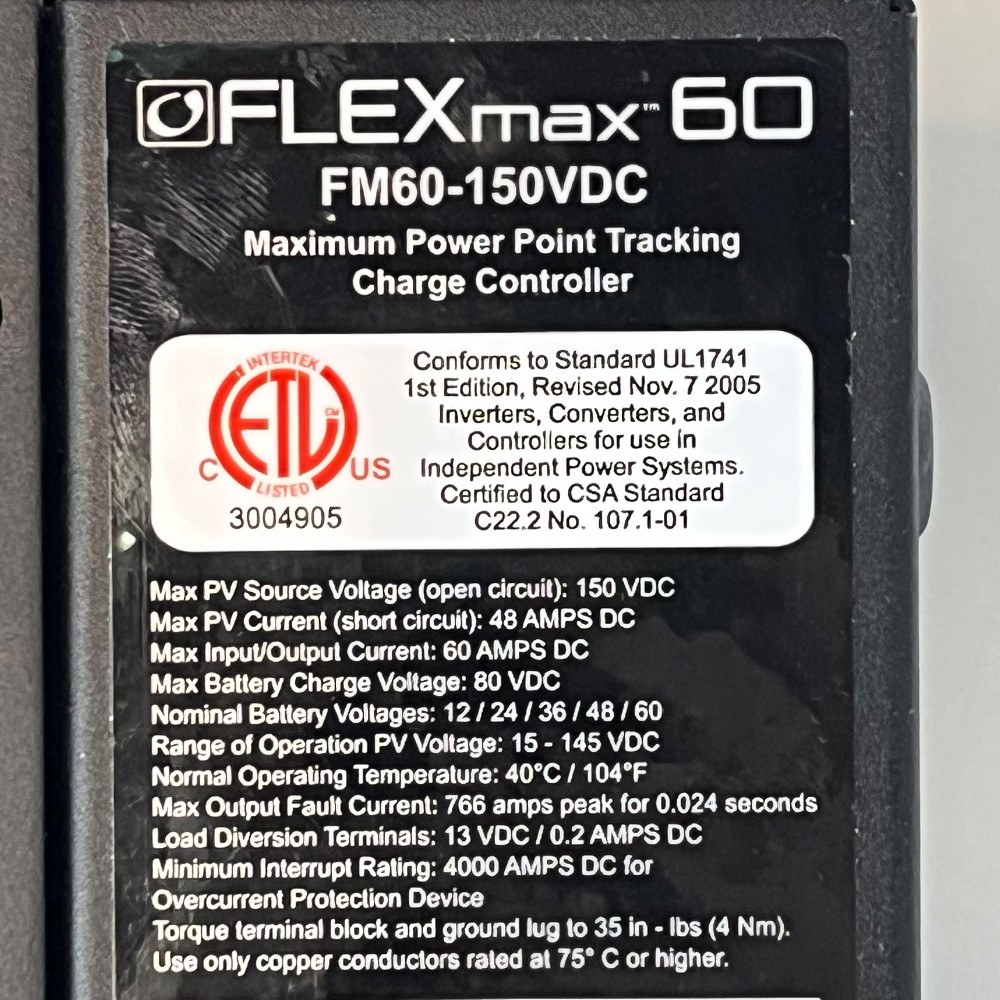 Model FM60-150VDC Manufactured Q3 of 2013