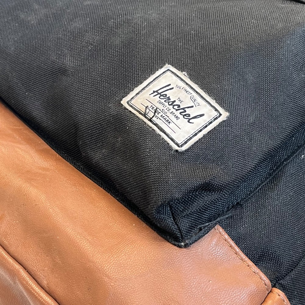 Home / Flannel, Puffers, Fleece, Wool, Vintage Outdoor Gear / Hershel Heritage Backpack w/Red Stripe Interior & Leather Bottom