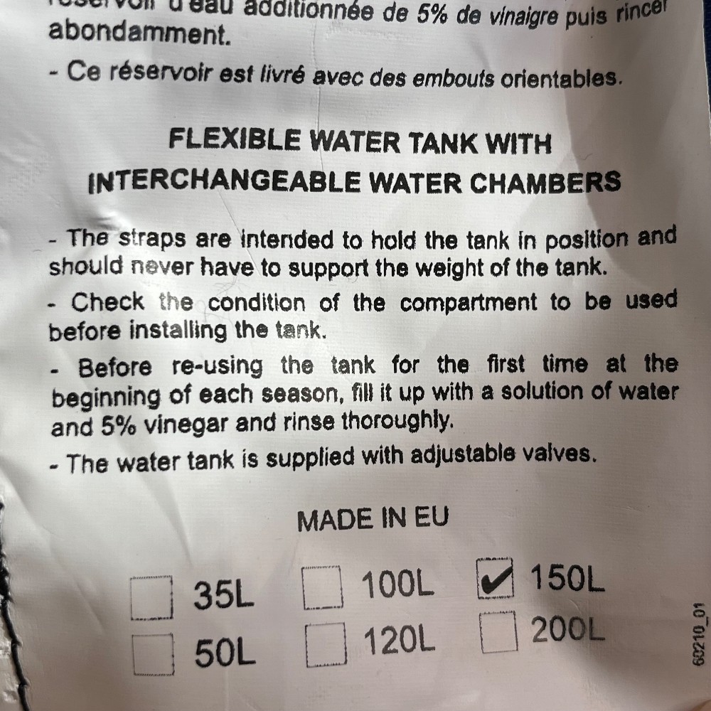 Purchased 2025. 150 Liters, P/N: 70955 (150cm x 75cm)