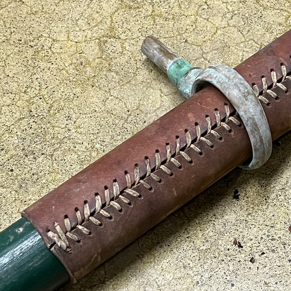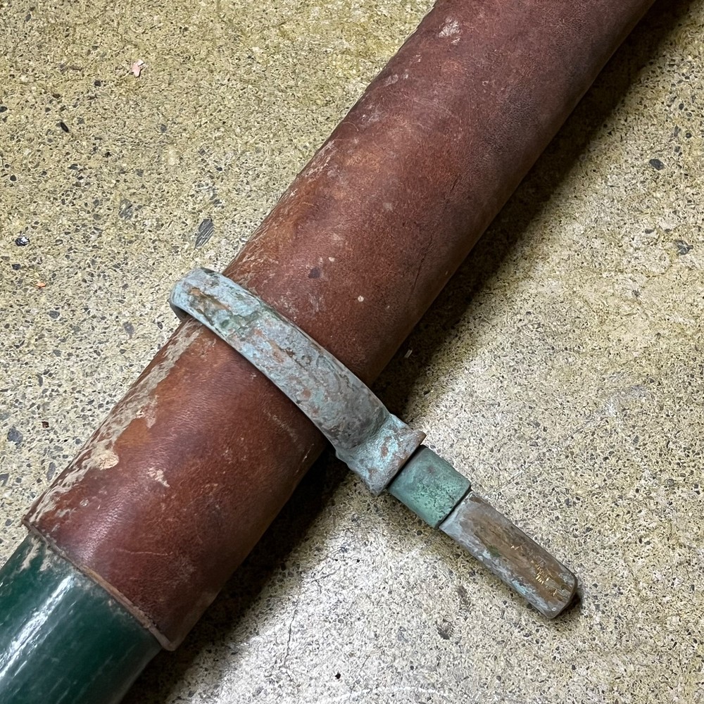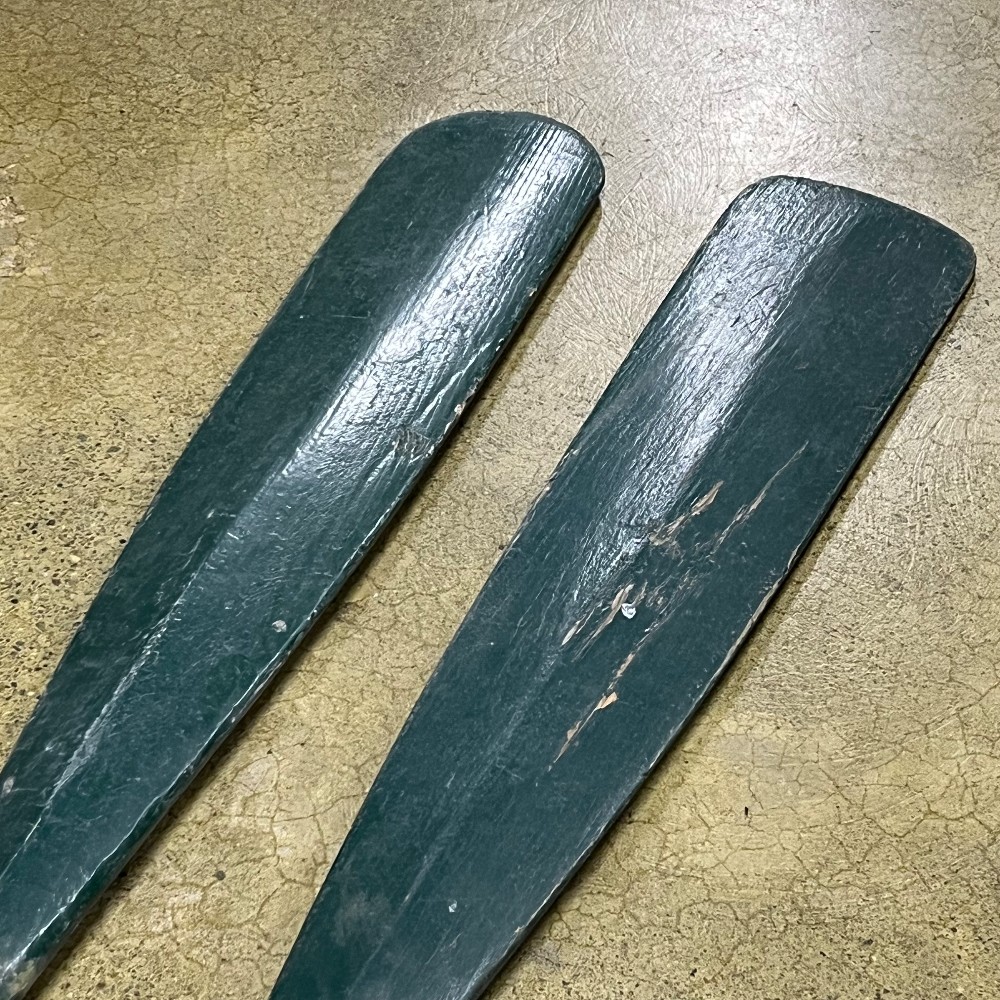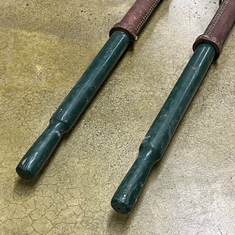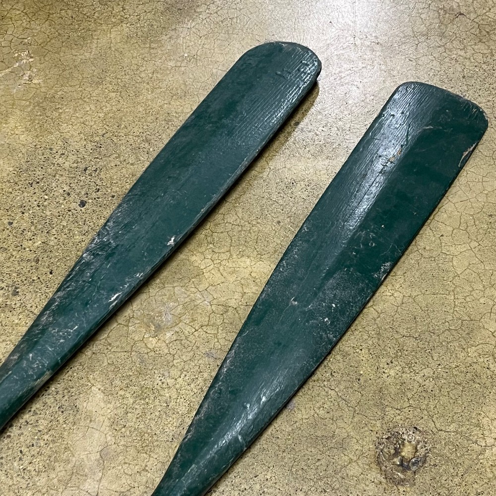Home / Oars, Oarlocks & Paddles / PAIR-Vintage 6' Painted Cedar Oars w/Leather Wrap + Brnz Oar Locks