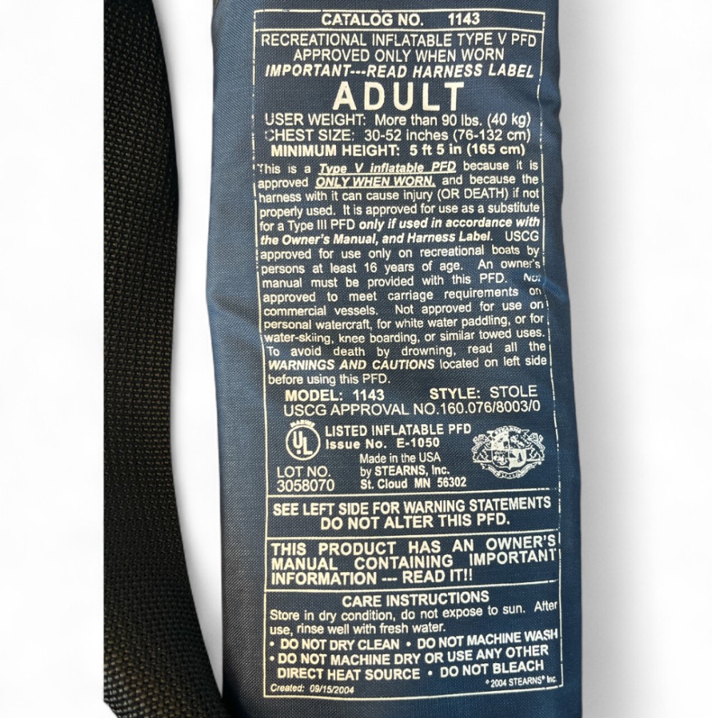 Manual Stearns Type V Inflatable PFD w/Harness