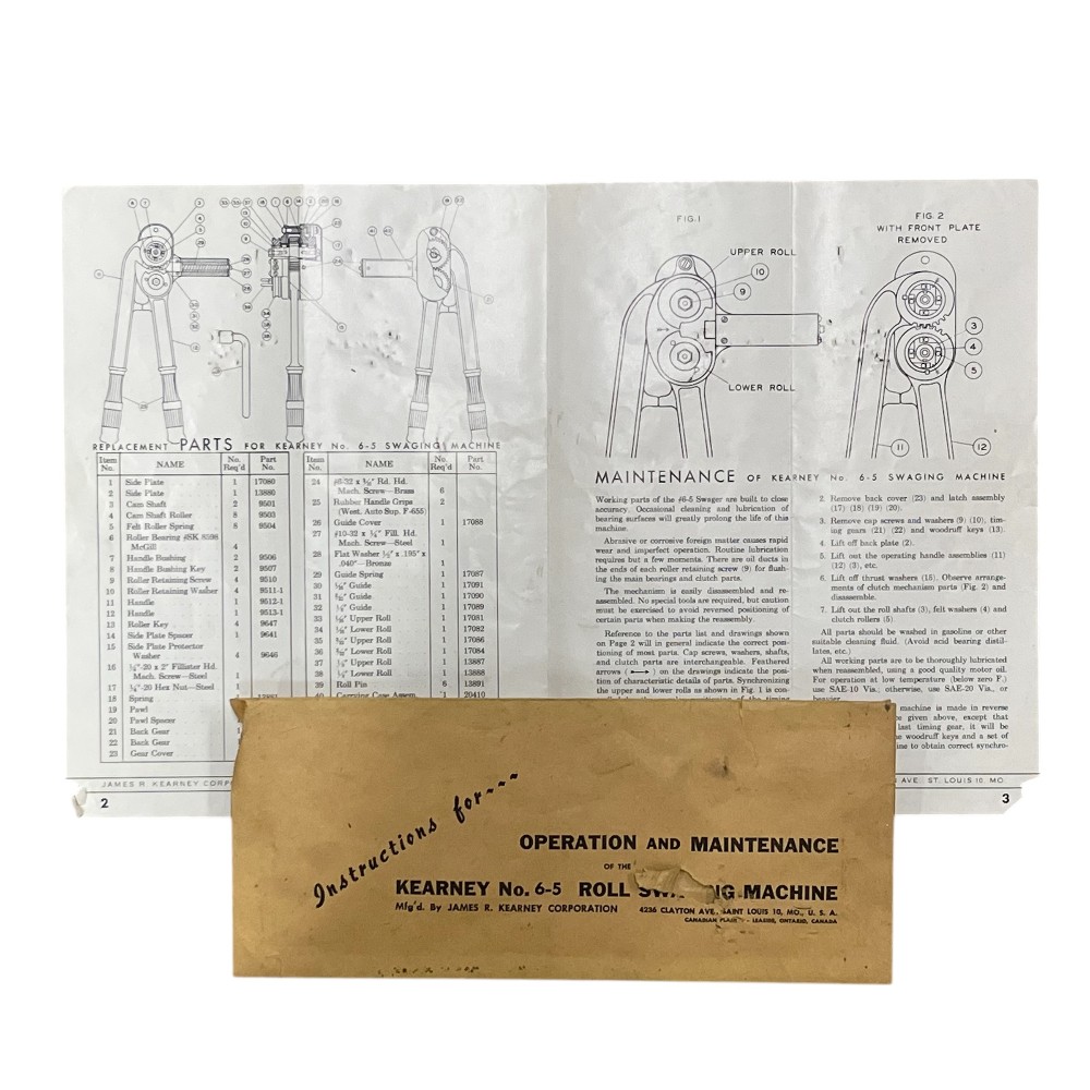 Kearney No. 6-5 Swaging Machine KIT/Tool Aircraft Aviation Swager